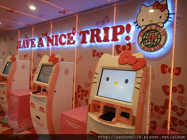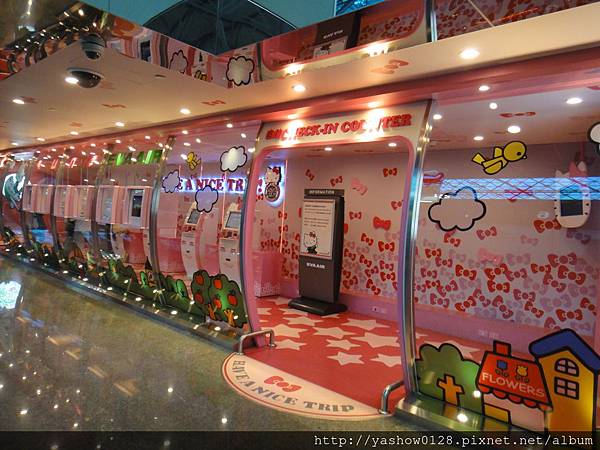 這次搭乘的是長榮航空,長榮好像都是在第二航廈吧,聽完說明後,到處走走看看,看到這個HOLLE KITTY自動化櫃檯~~