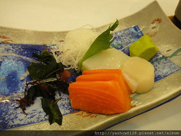 來日本吃得第一個鮭魚生魚片,讚啦~~哈