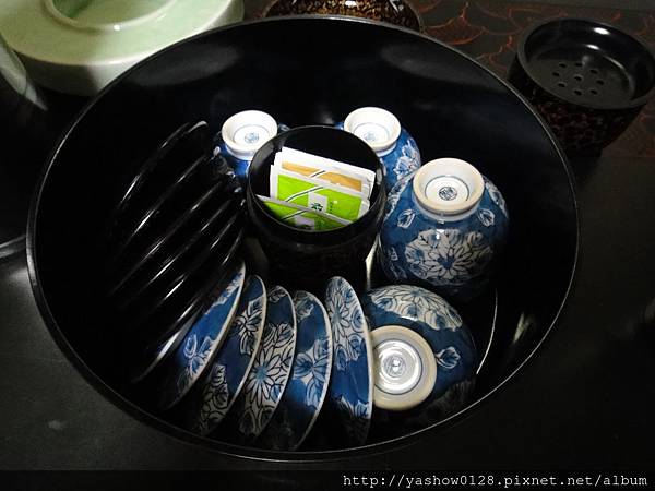 他們的茶具組不是像一般飯店放在櫃子上,而是放在盒子裡,沒打開它的話,我還真不知道這裡面有放東西耶~~
