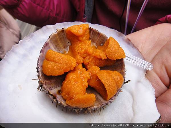 最後導遊帶我們來到這攤吃干貝和馬糞海膽~~
