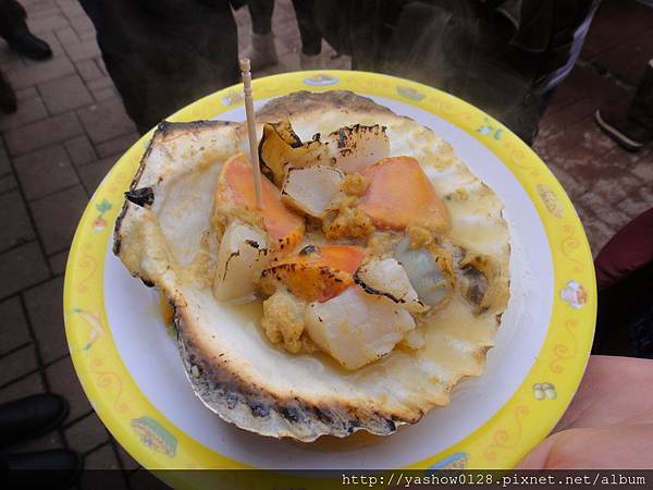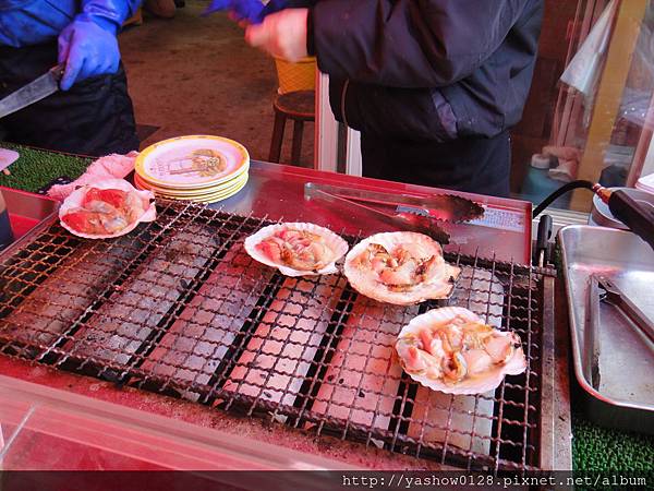 現烤干貝,鮮度的確很夠,QQ嫩嫩的又不失咬勁,一個要價600元日幣,約台幣190元左右~~