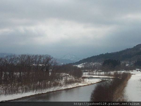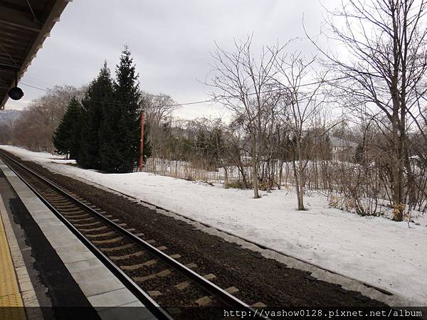 發現了嗎~~這裡的積雪很多耶~從鐵道這裡望過去,還真的是一片白茫茫的景色,終於有感受到我是來到雪國的地方~~