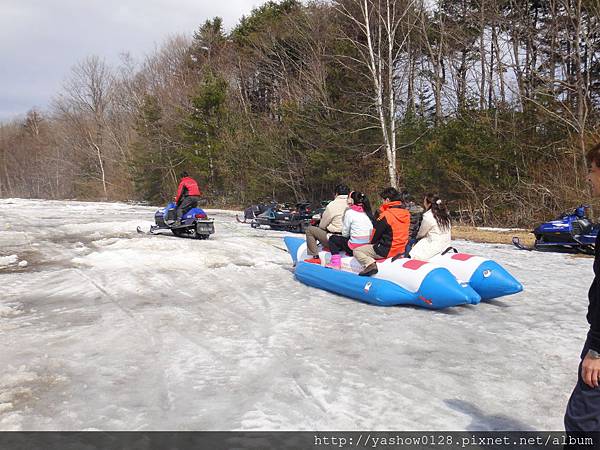 有點失望啦~~跟我想的一整片白雪地完全不同,反正旅行社招待玩雪上香蕉船和雪上摩托車,就來玩看看囉~~