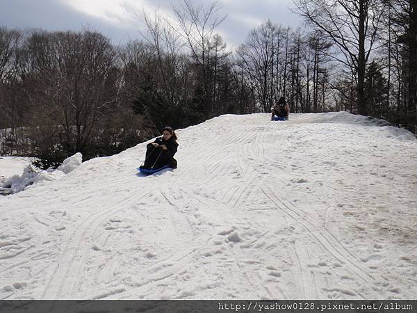 這座小山也真的才是雪,不要看它沒有很高喔,但從上面滑下來也是超刺激的,控制不好還會跌個四腳朝天咧~你光在下面看到人家跌都覺得很好笑~不過這真的很好玩,我們都玩了好多次呢~~