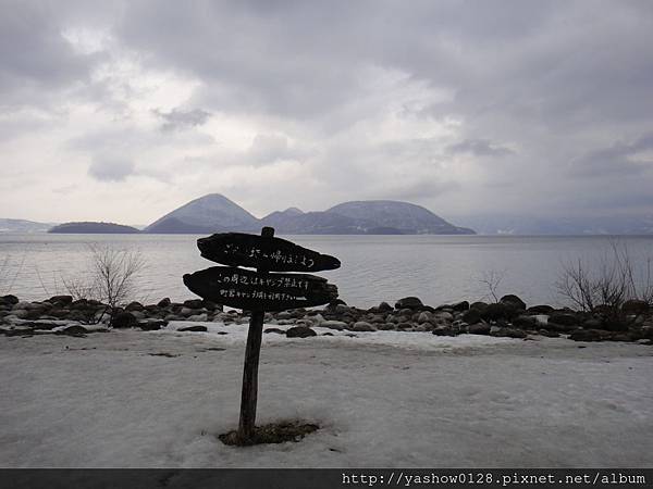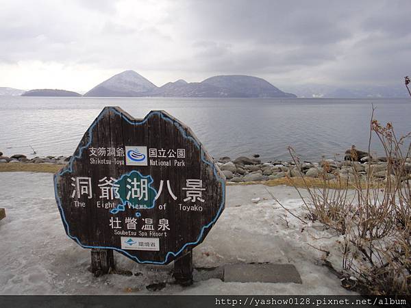 接下來的點是昭和新山,但洞爺湖就在昭和新山的附近,而且它不是排在行程裡面的,導遊說有經過就下車讓我們拍個到此一遊的照片吧~~