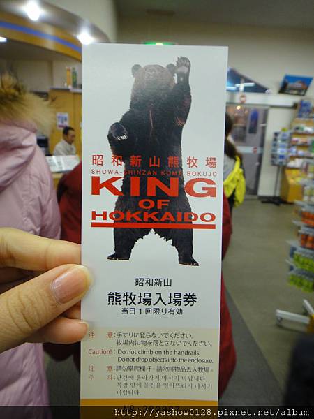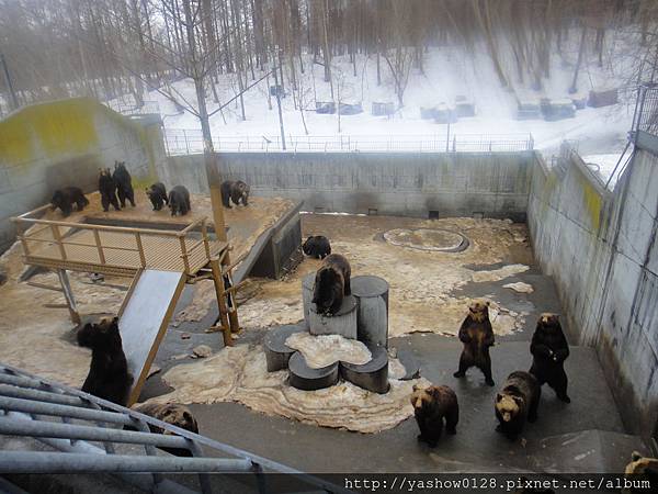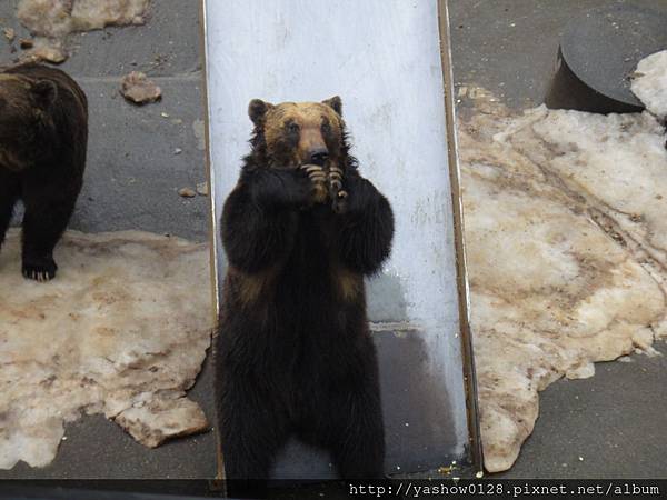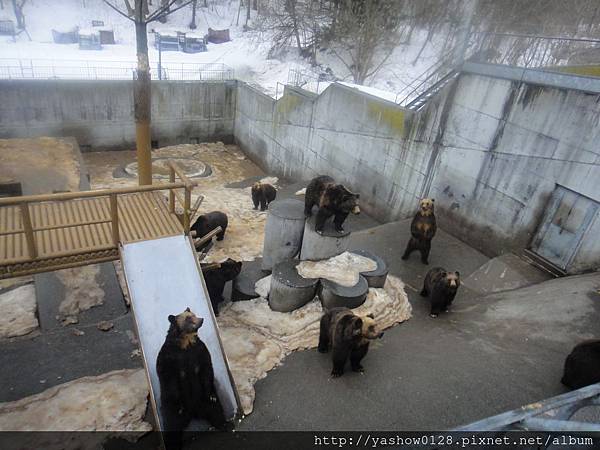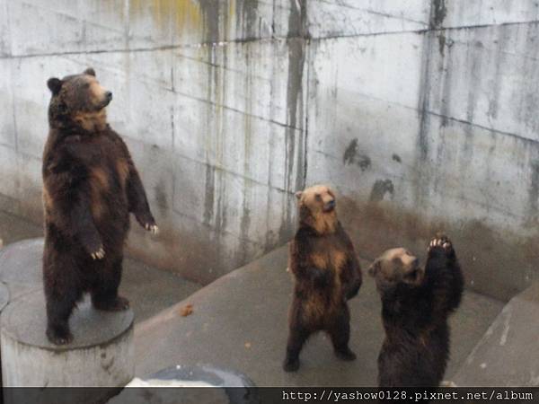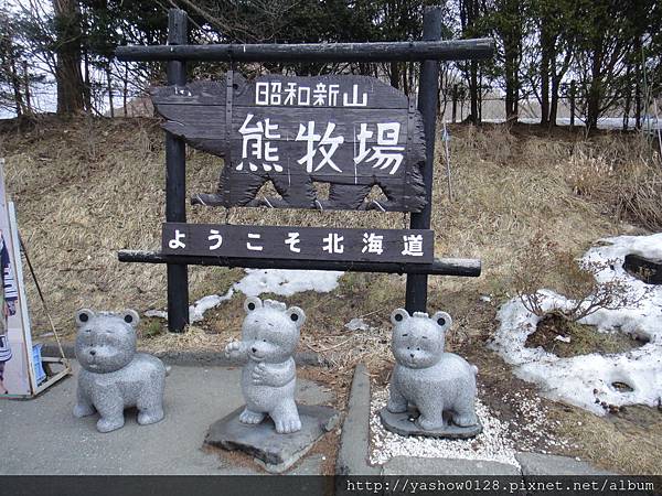 在昭和新山旁有一座熊牧場,裡頭飼養著100多頭的棕熊,這些棕熊已經適應人類,為了得到你手中的蘋果,可是會站起來跟你舉手揮舞著,還會拜託呢~~