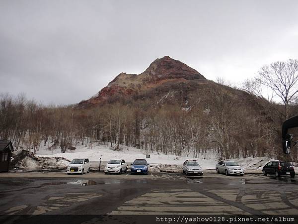 丟完熊後,走出熊牧場,從停車的地方看過去,這裡就是昭和新山了~~