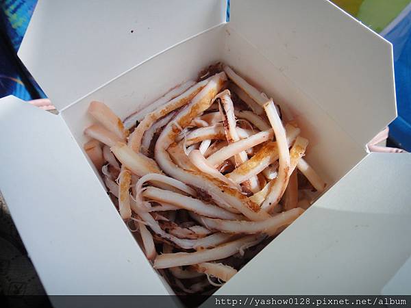 這和市面上包裝的那種吃起來是完全不一樣的,這魷魚比較香也比較Q,愈嚼愈有甜味釋放出來,這也可以買喔,只不過這可以兩人買一盒吃就夠了~~