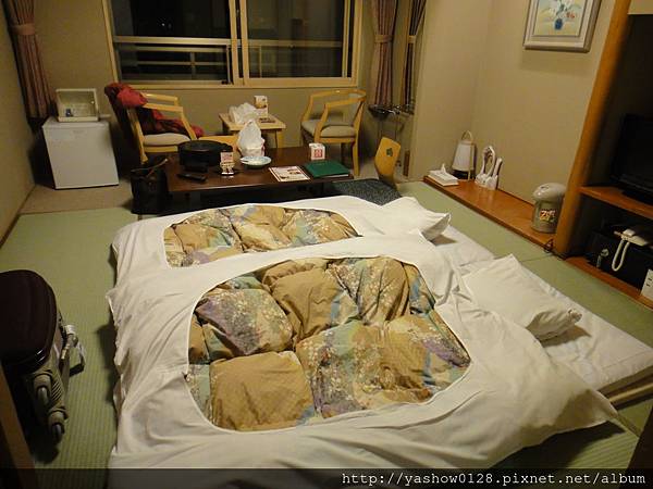 等我們吃完晚餐再回房間時,床已經舖好啦~~床墊軟硬適中,是還滿好睡的,一覺到天亮啦~~
