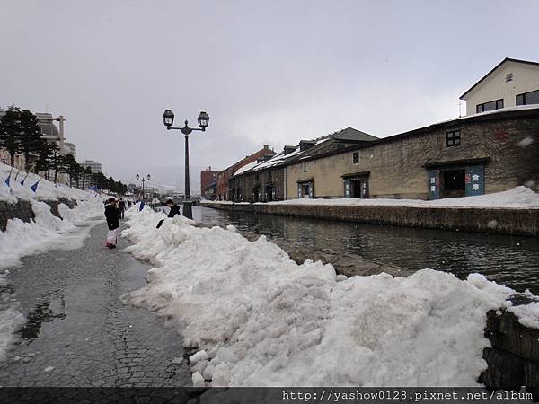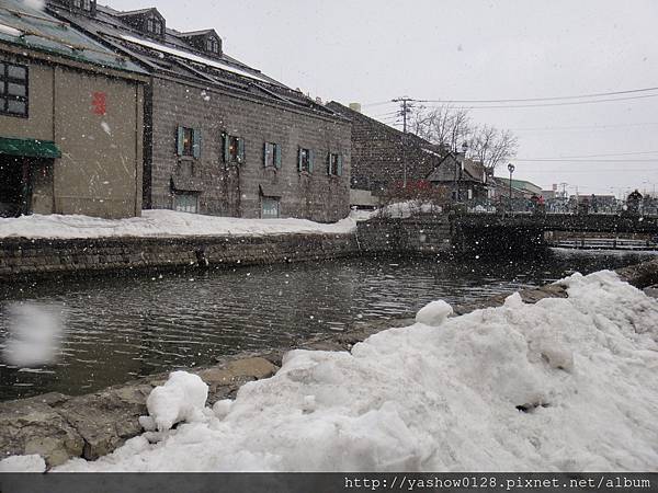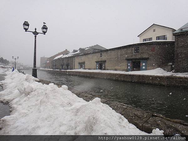 就是這裡啦~~小樽運河,而且當時還下起雪來,更增添了小樽運河的美感,超夢幻的啦~~