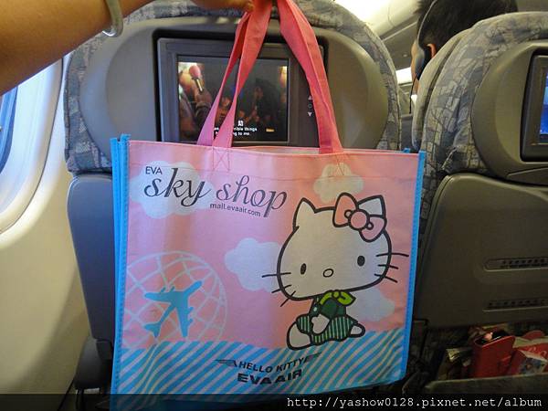 只要在機上買免稅品,就送Hello Kitty的環保袋
