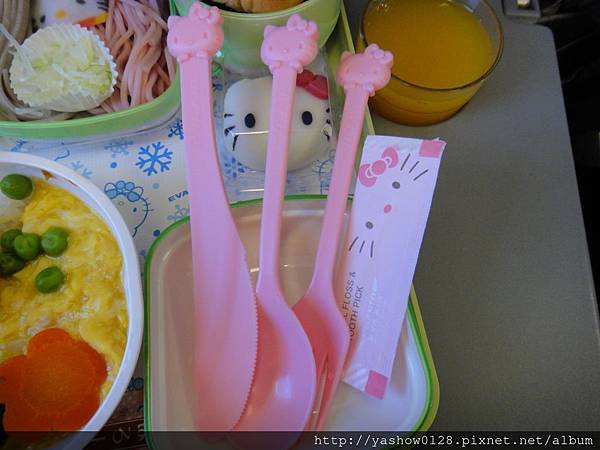 餐點好不好吃已經是其次了,只要印上Hello kitty就讓人很吸睛了,反正飛機餐也不要要求太多囉~~