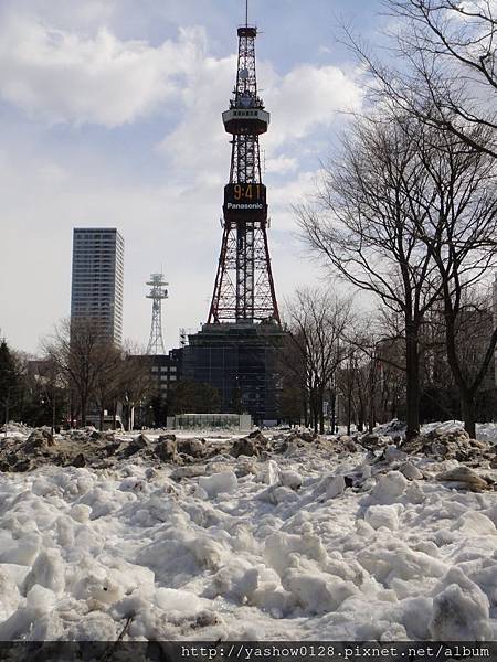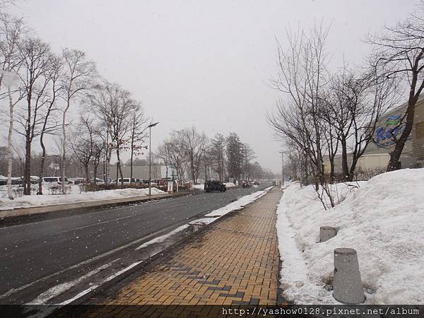 在高緯度的札幌,果然天氣還是一片寒冷,已經三月底了,你看一旁積雪還是這麼的厚~~