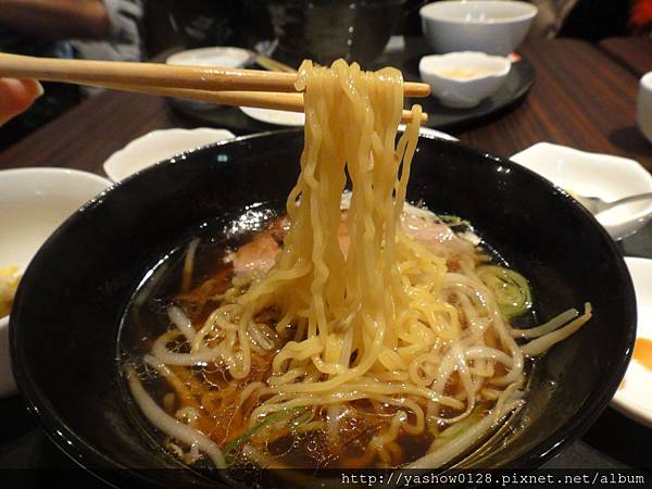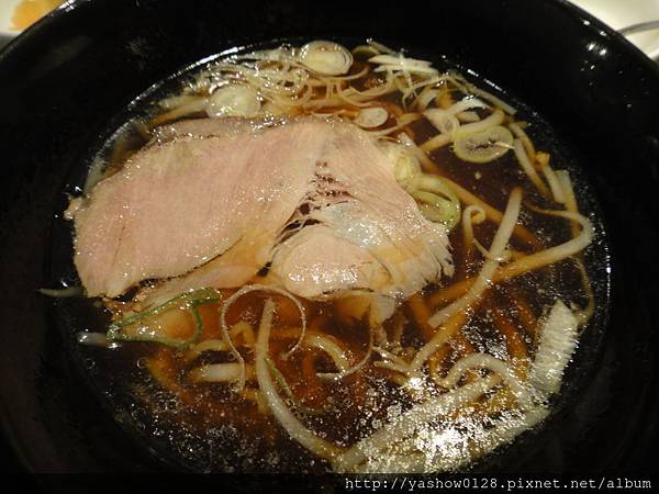 簡單的醬油口味拉麵,麵條還滿Q的,湯頭清清淡淡,加上肚子餓,這碗麵也是很快就解決掉了~~